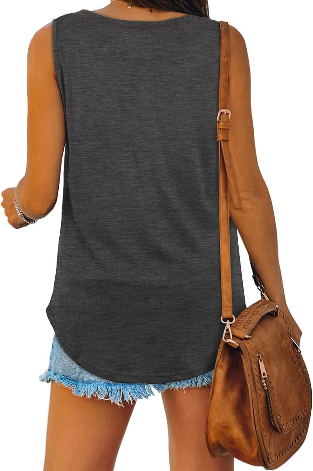 XIEERDUO Womens Tank Tops V Neck Basic Solid Color Casual Flowy Summer Sleeveless(01-darkgrey)