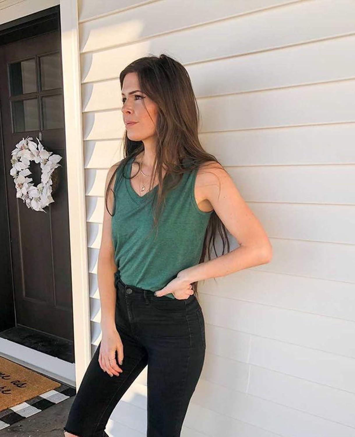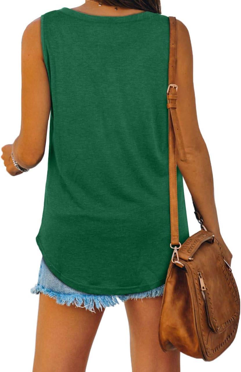 XIEERDUO Womens Tank Tops V Neck Basic Solid Color Casual Flowy Summer Sleeveless(01-green)