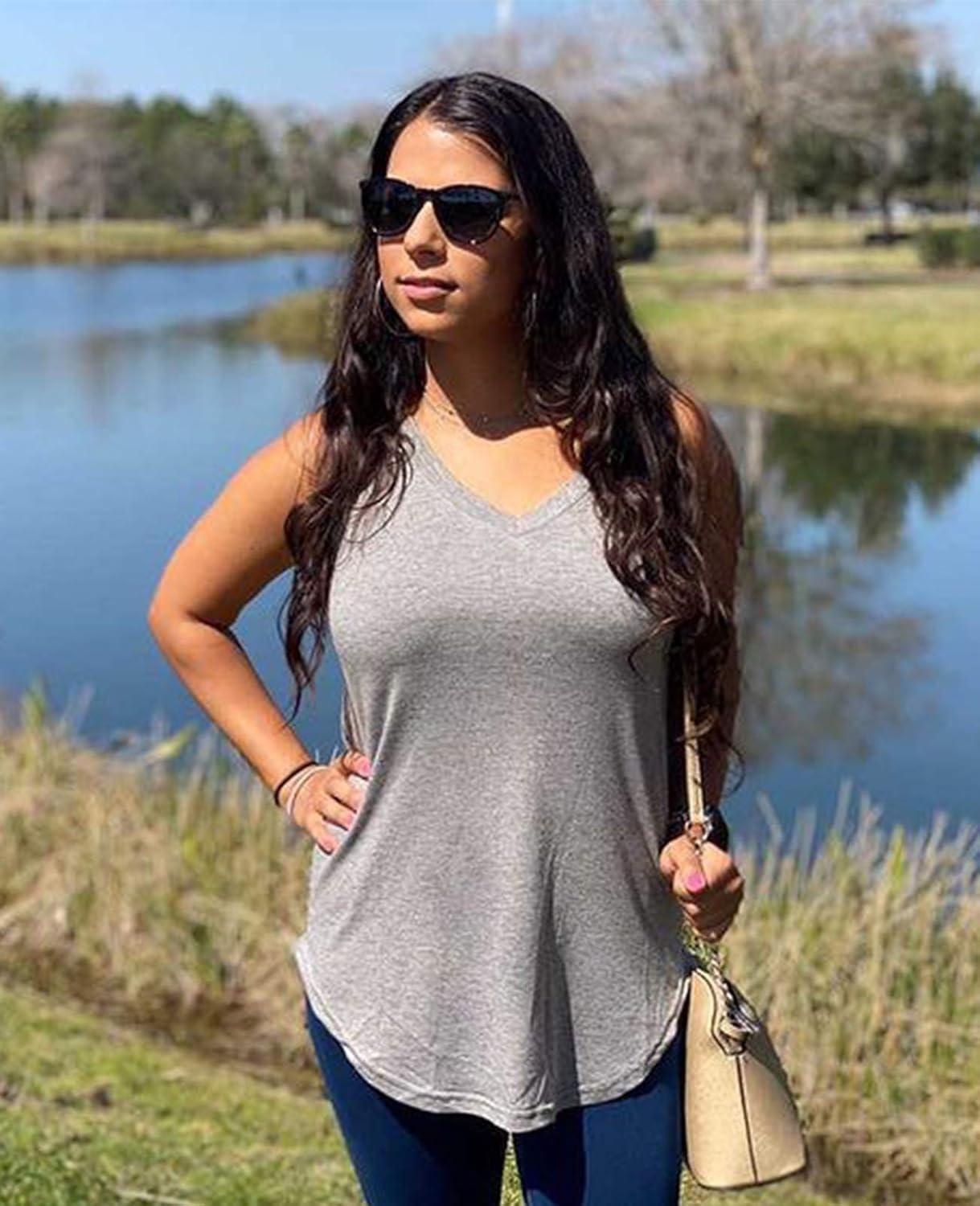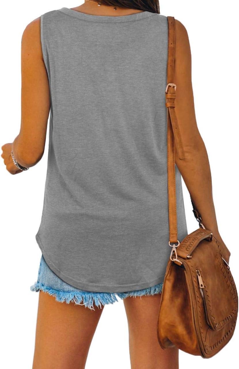 XIEERDUO Womens Tank Tops V Neck Basic Solid Color Casual Flowy Summer Sleeveless(01-grey)