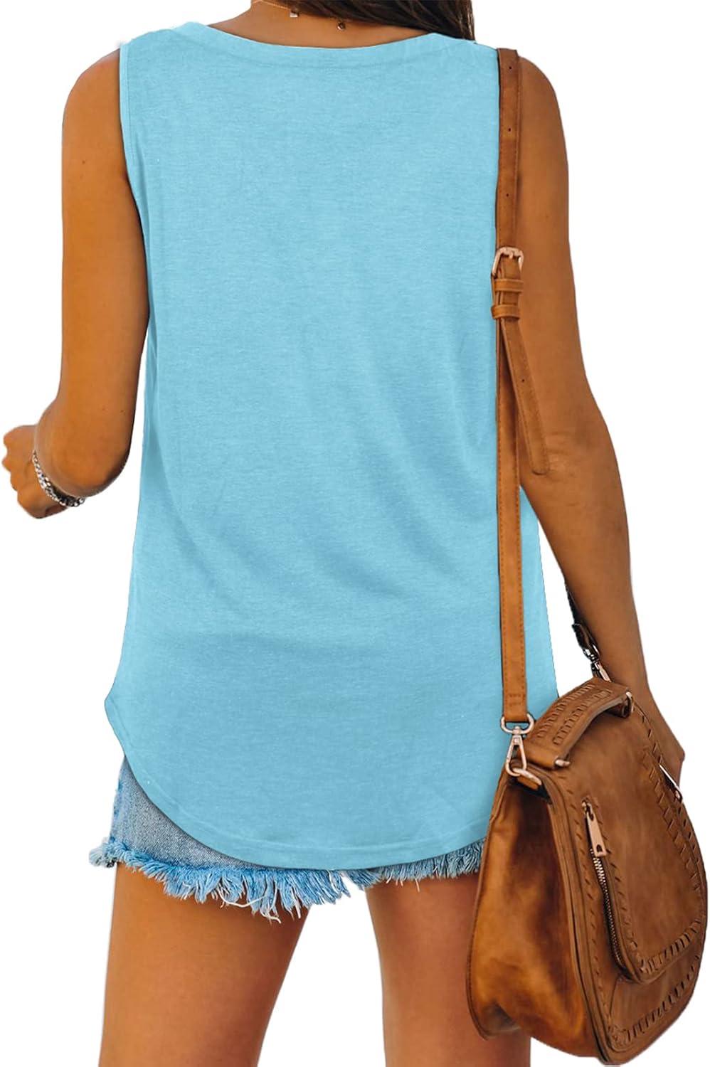 XIEERDUO Womens Tank Tops V Neck Basic Solid Color Casual Flowy Summer Sleeveless(01-lakeblue)