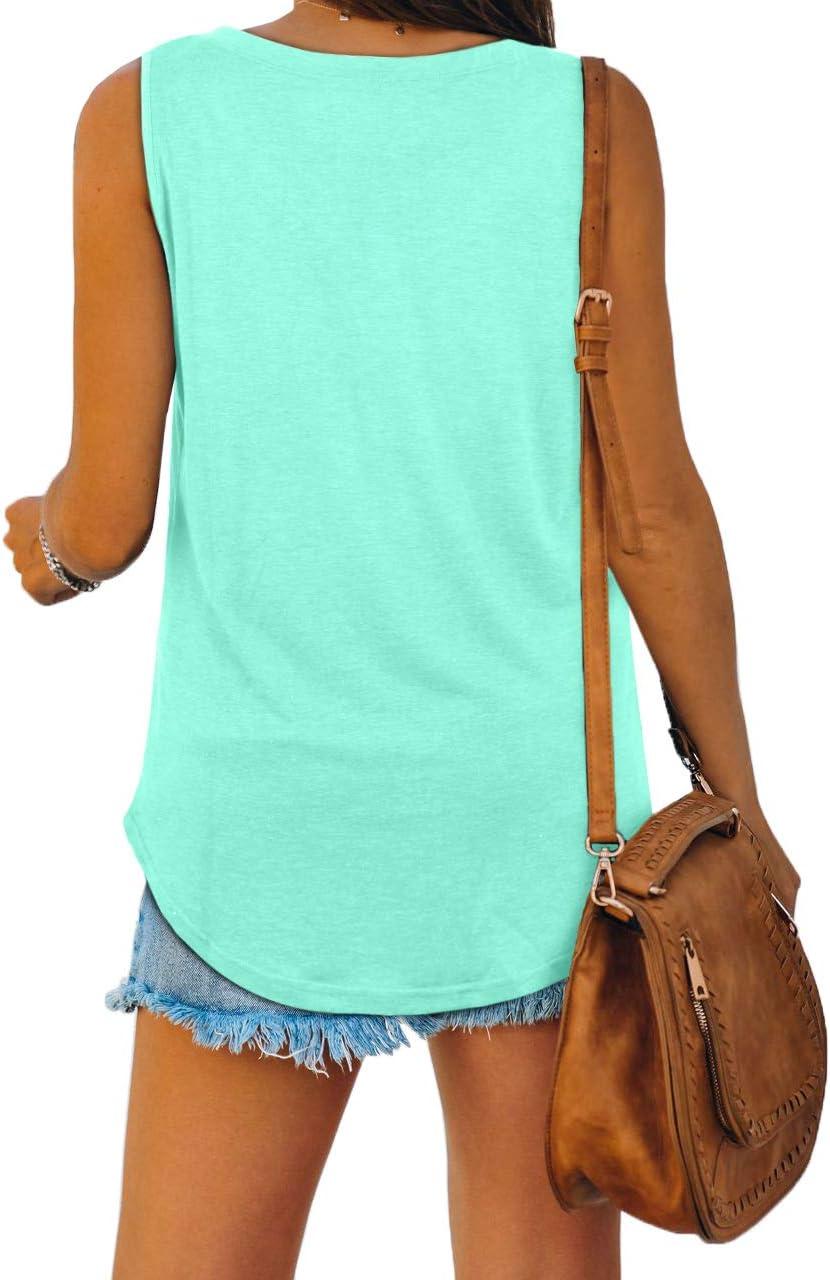 XIEERDUO Womens Tank Tops V Neck Basic Solid Color Casual Flowy Summer Sleeveless(01-lakegreen)
