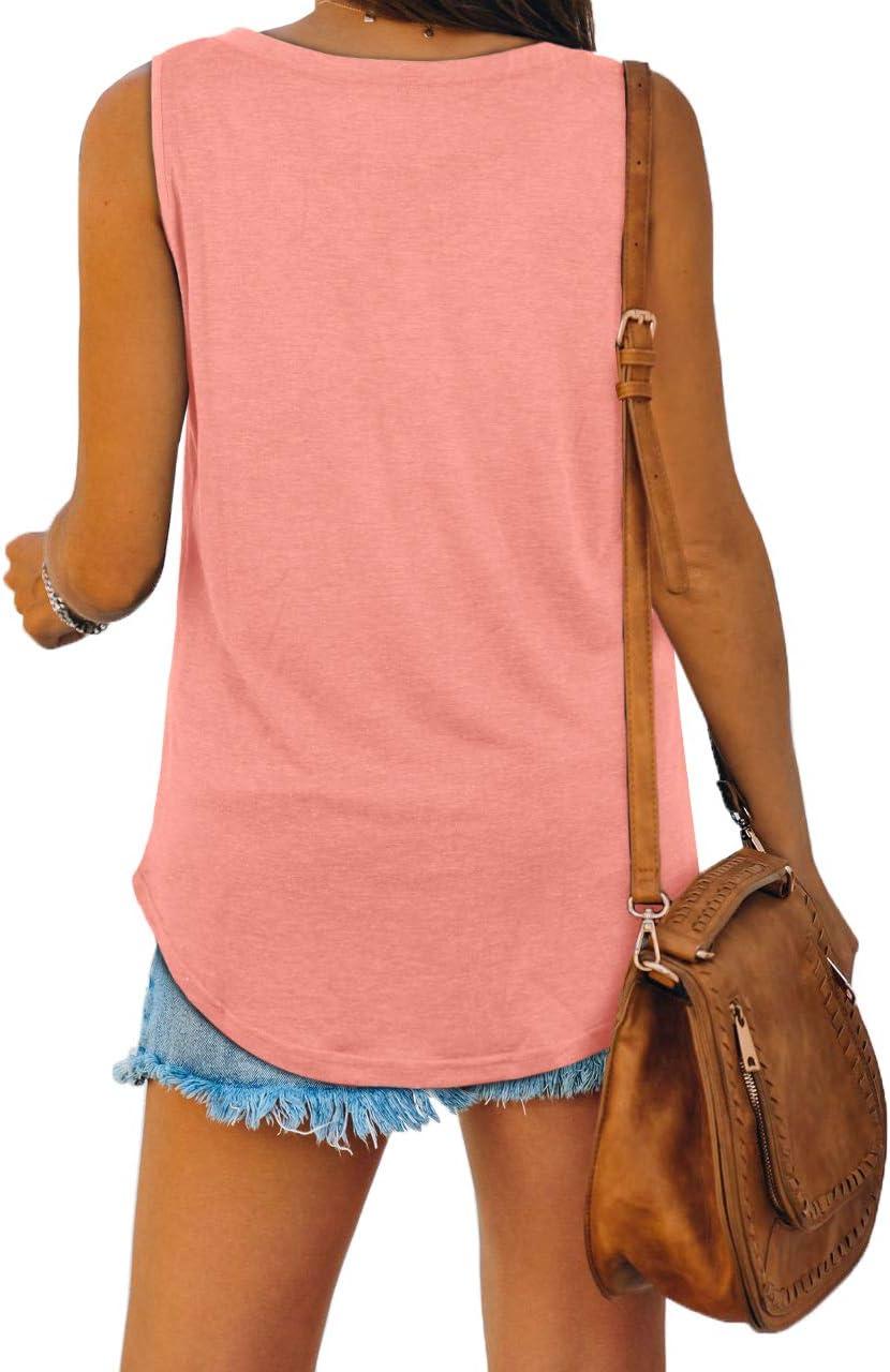 XIEERDUO Womens Tank Tops V Neck Basic Solid Color Casual Flowy Summer Sleeveless(01-pink)