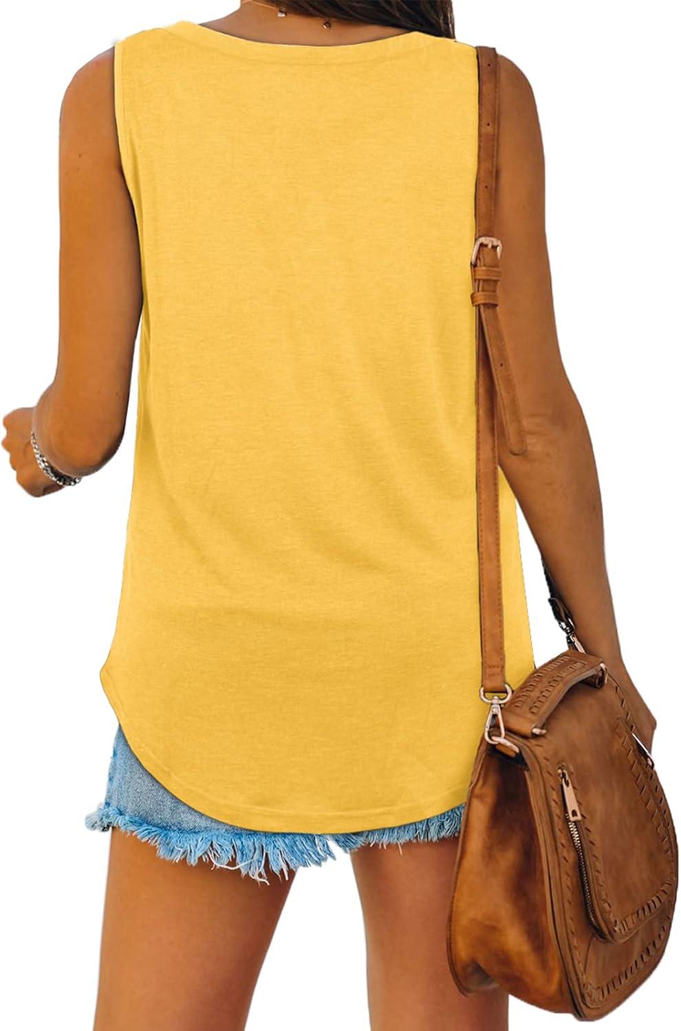 XIEERDUO Womens Tank Tops V Neck Basic Solid Color Casual Flowy Summer Sleeveless(01-yellow)