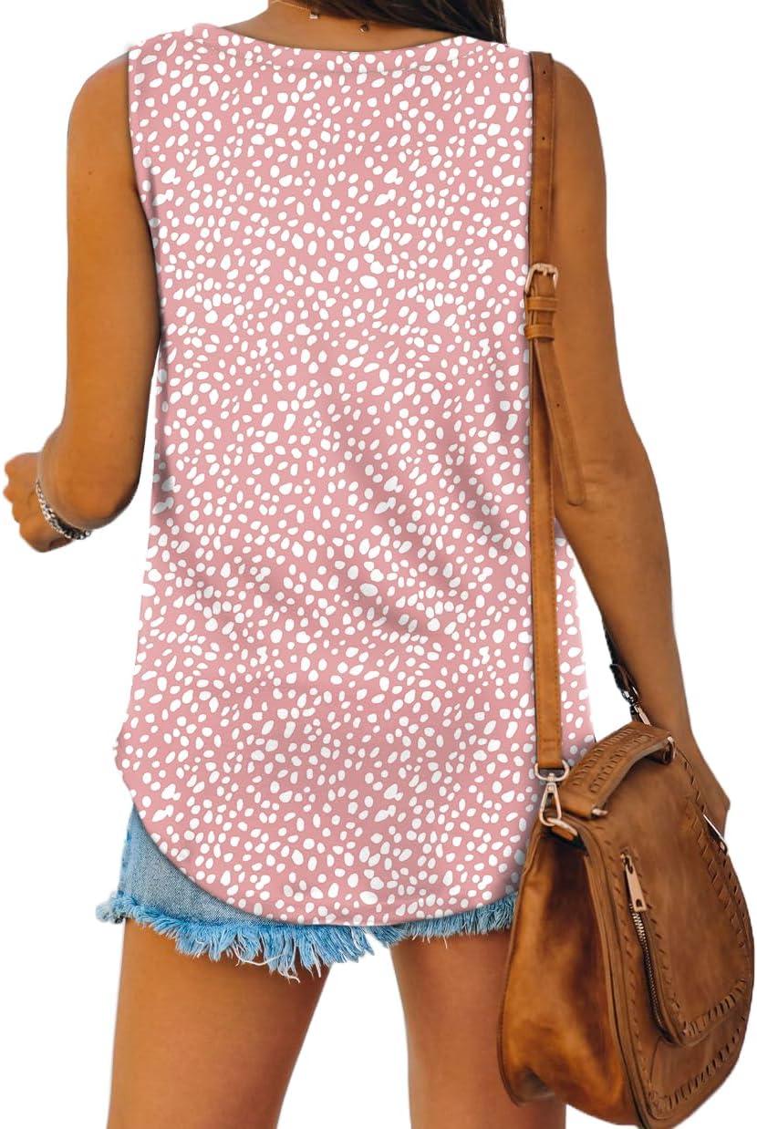 XIEERDUO Womens Tank Tops V Neck Basic Solid Color Casual Flowy Summer Sleeveless(Pink Dot)