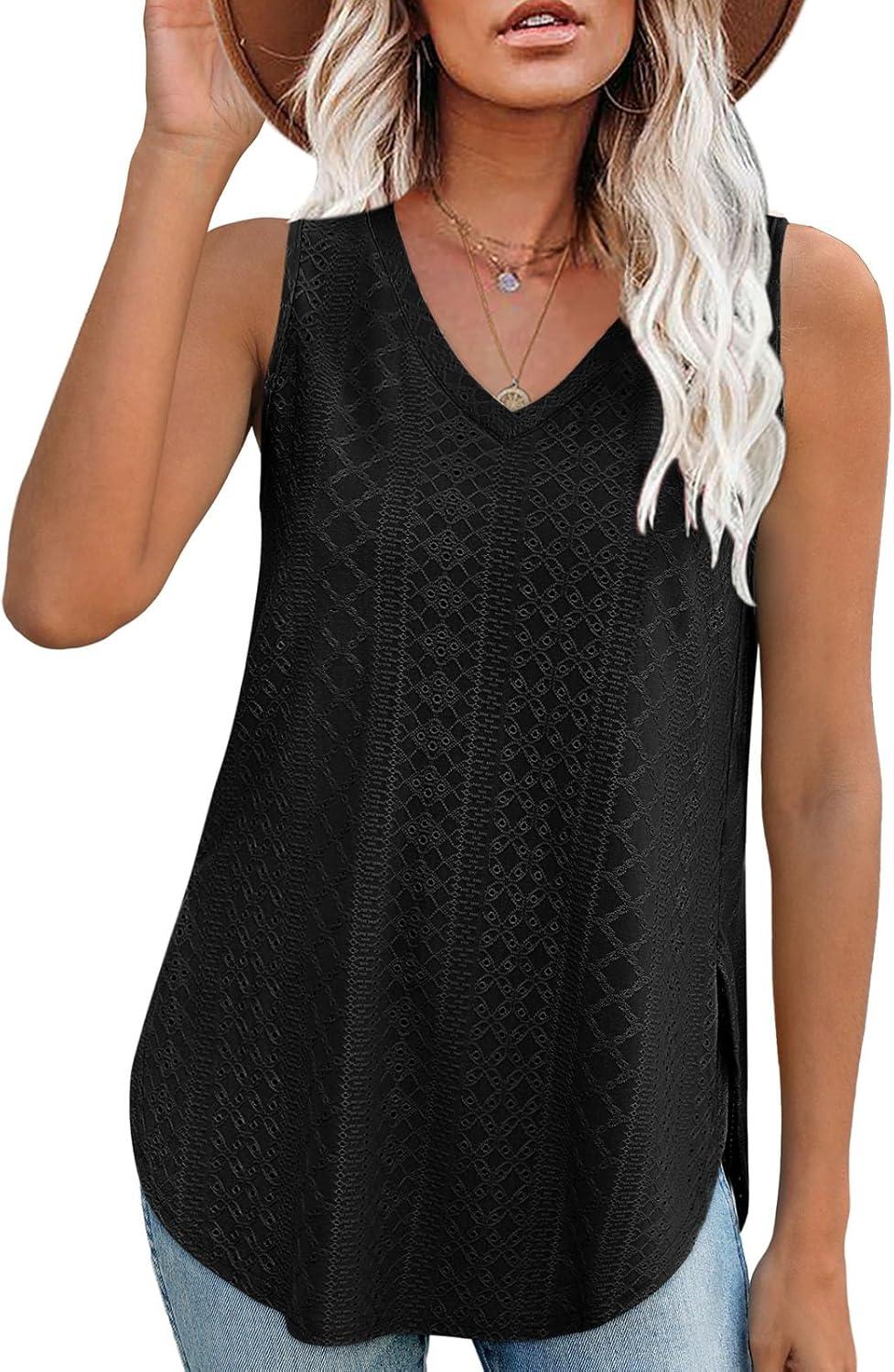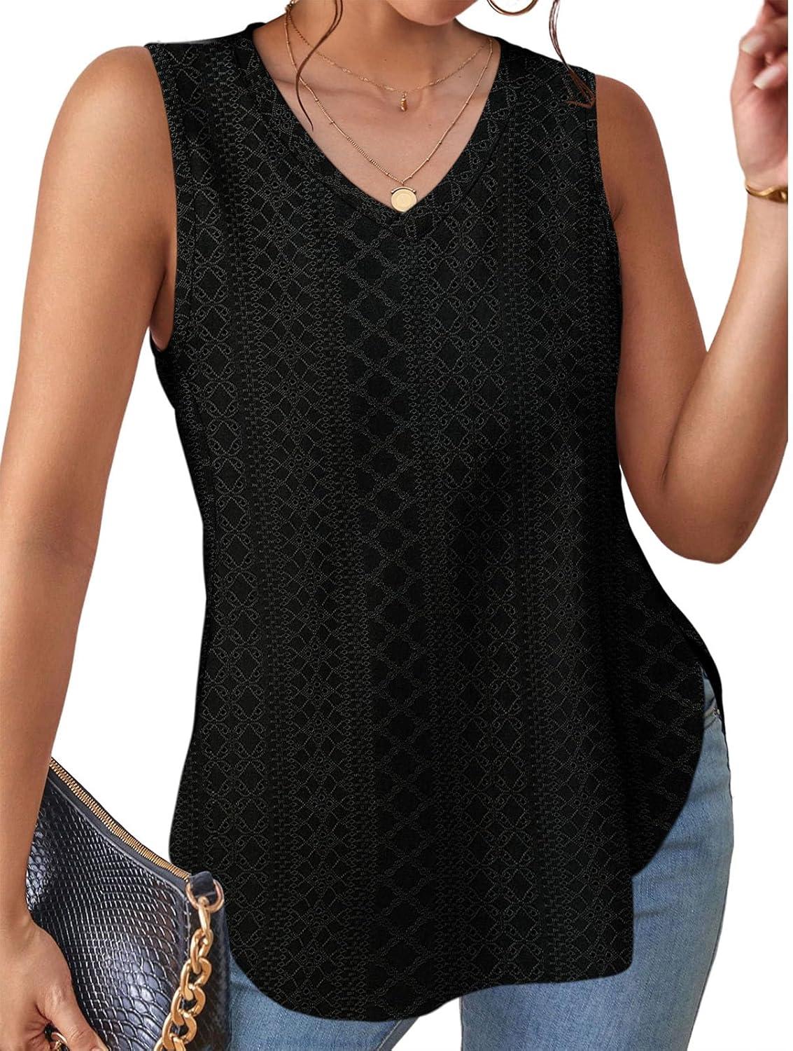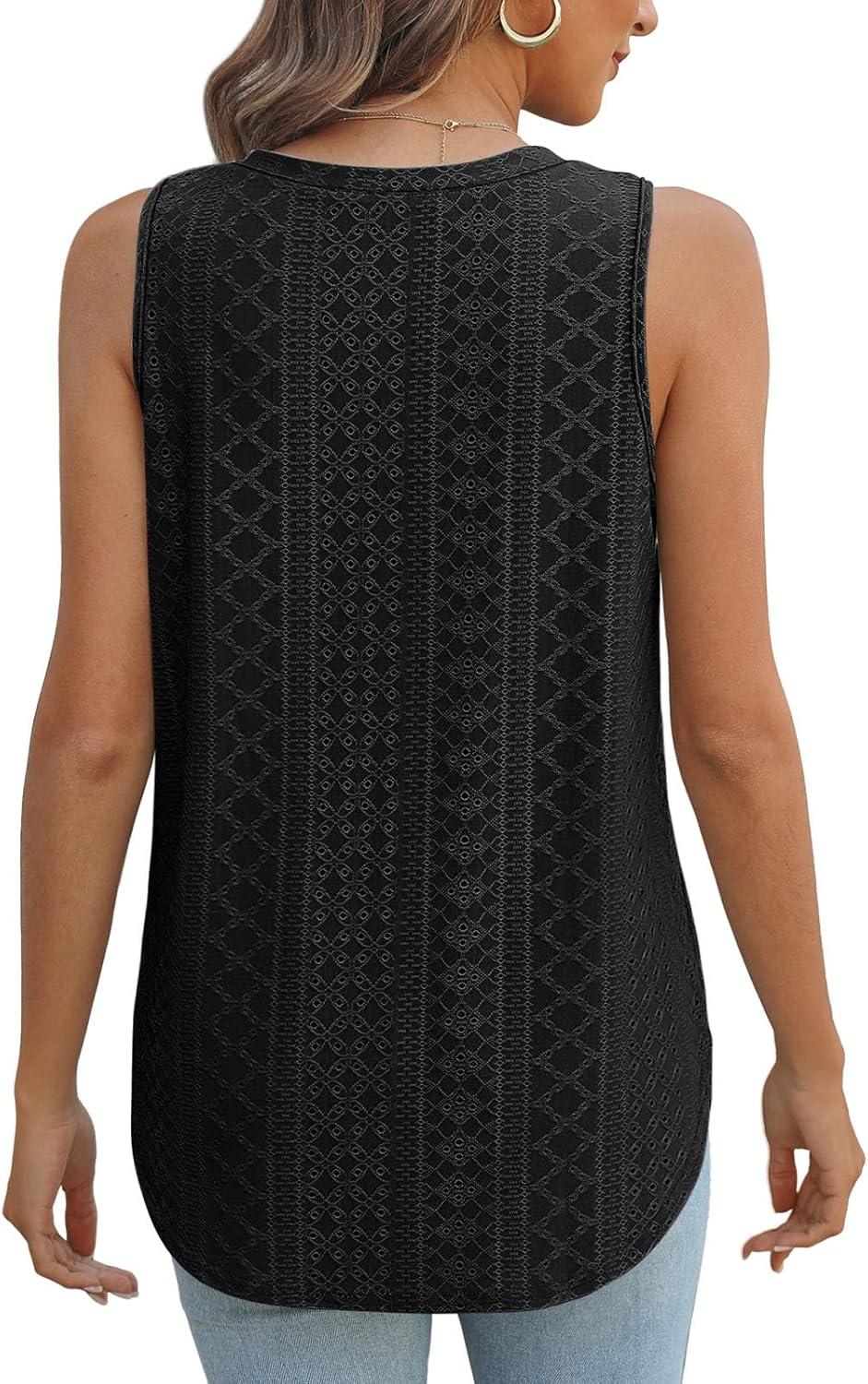 XIEERDUO Womens Tank Tops V Neck Eyelet Embroidery Casaul Sleeveless Shirts(02-black)
