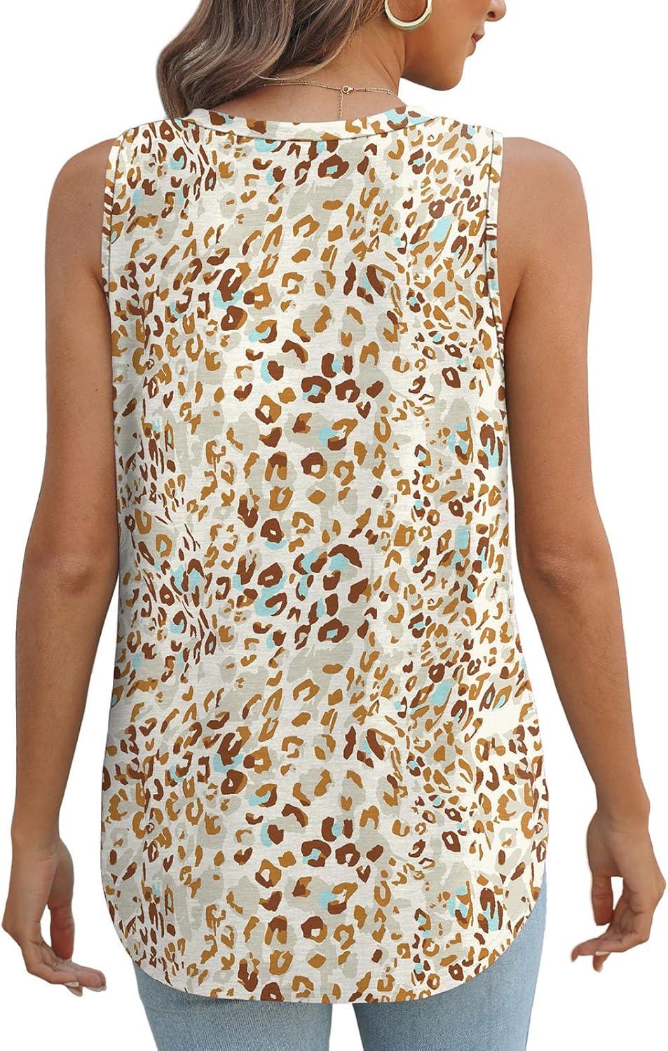 XIEERDUO Womens Tank Tops V Neck Eyelet Embroidery Casaul Sleeveless Shirts(08-leopard Print)