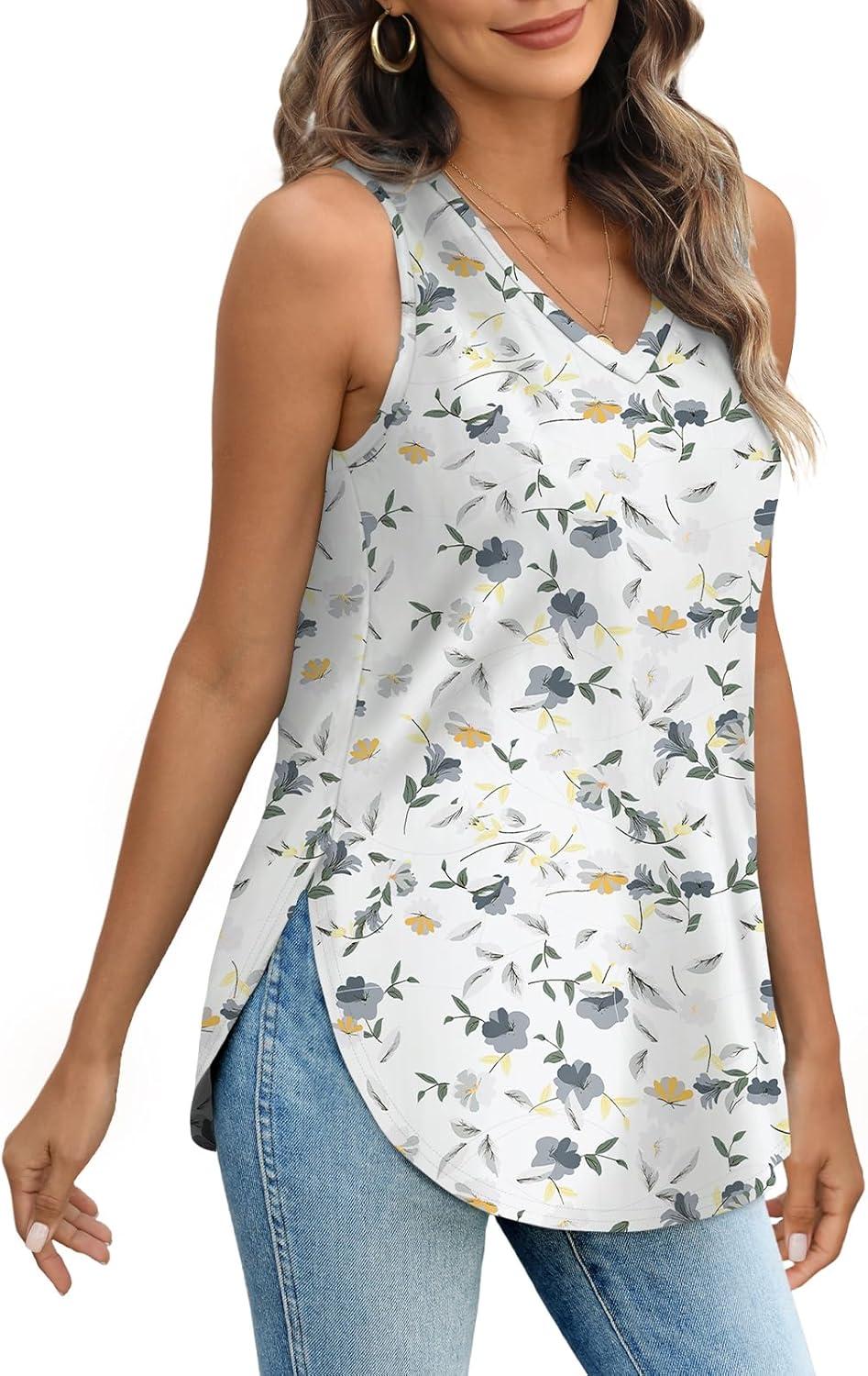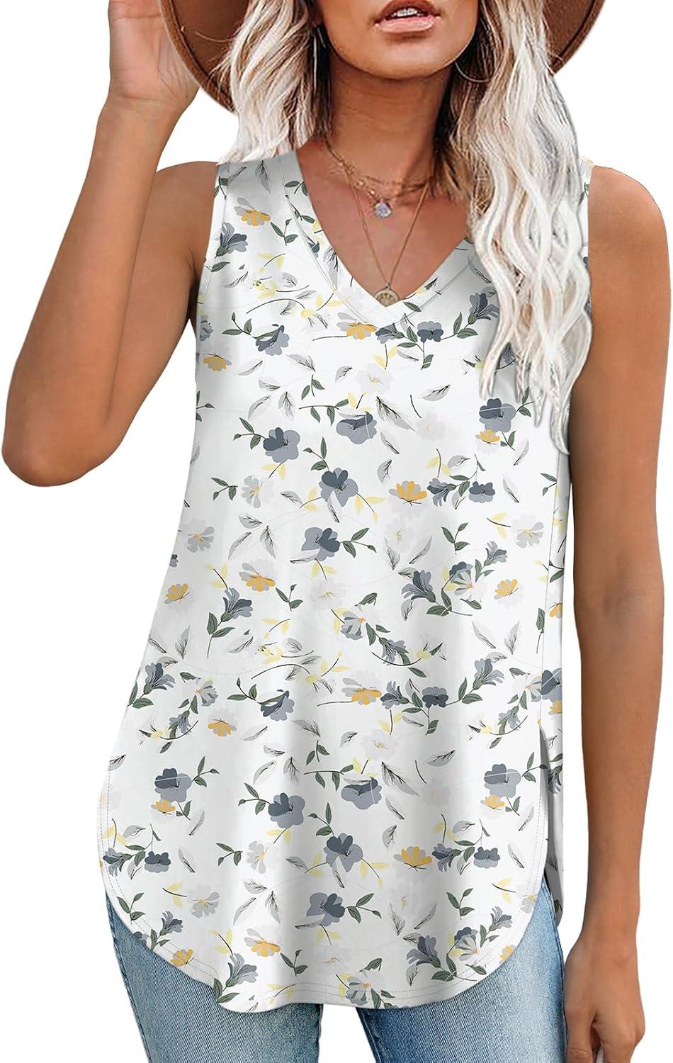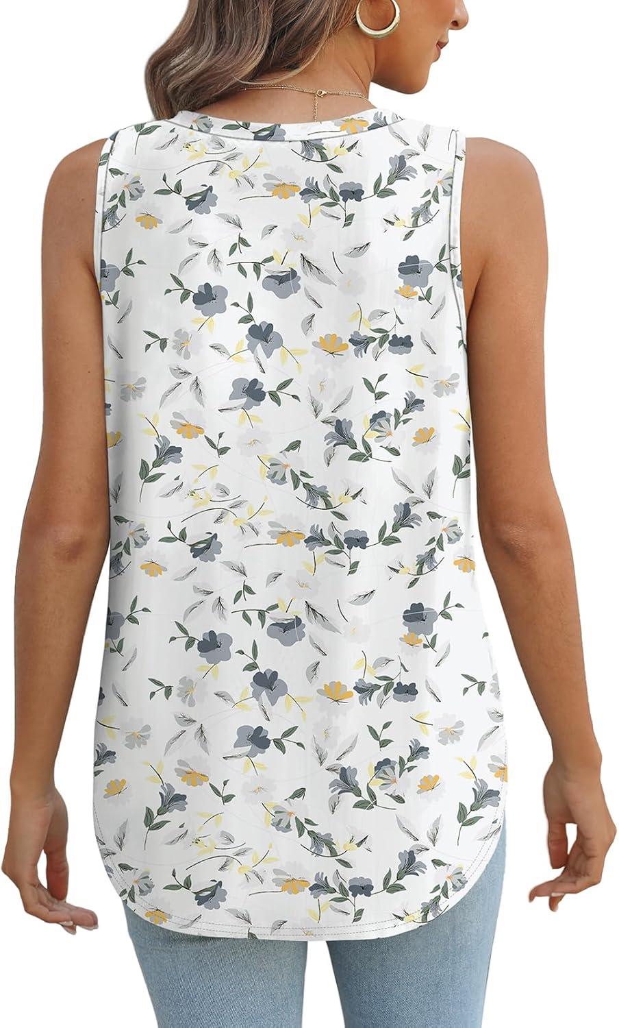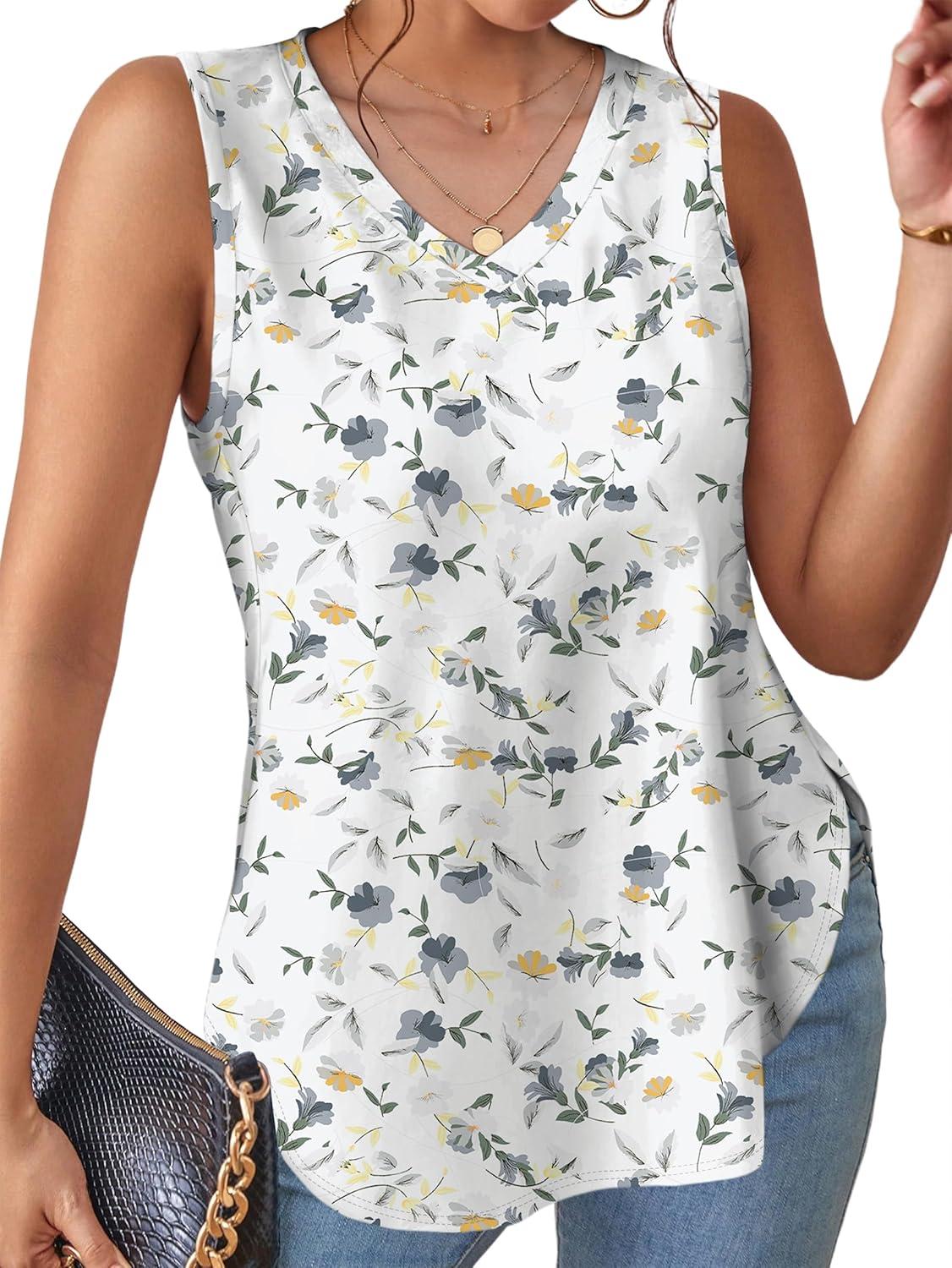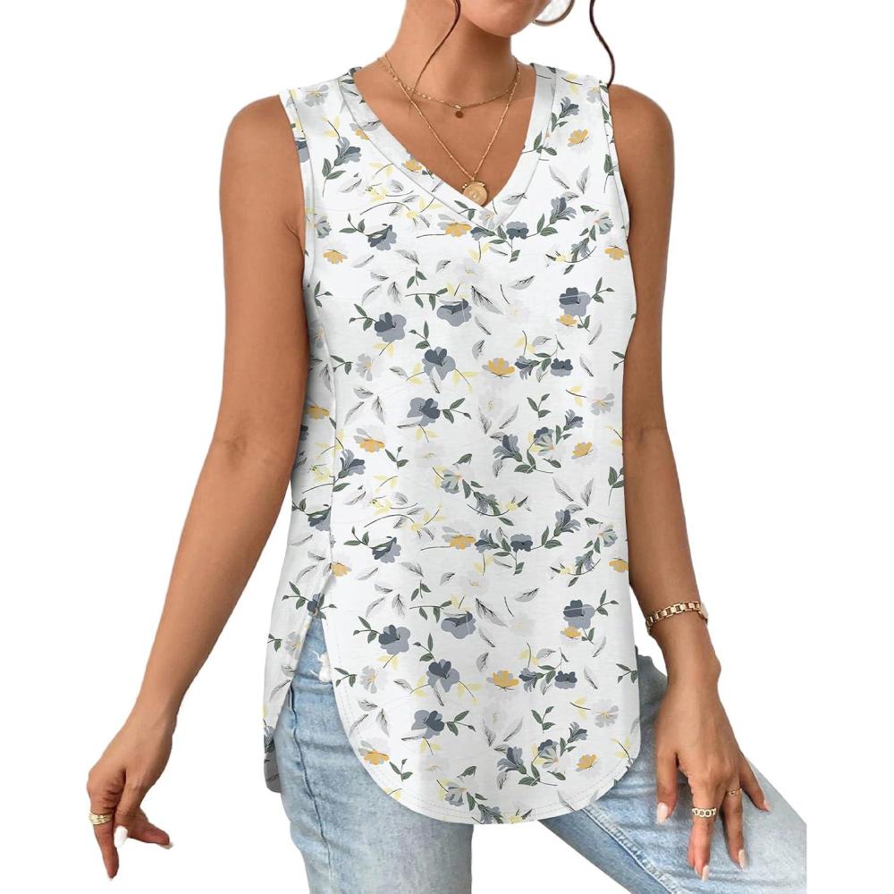 XIEERDUO Womens Tank Tops V Neck Eyelet Embroidery Casaul Sleeveless Shirts(Floral White)