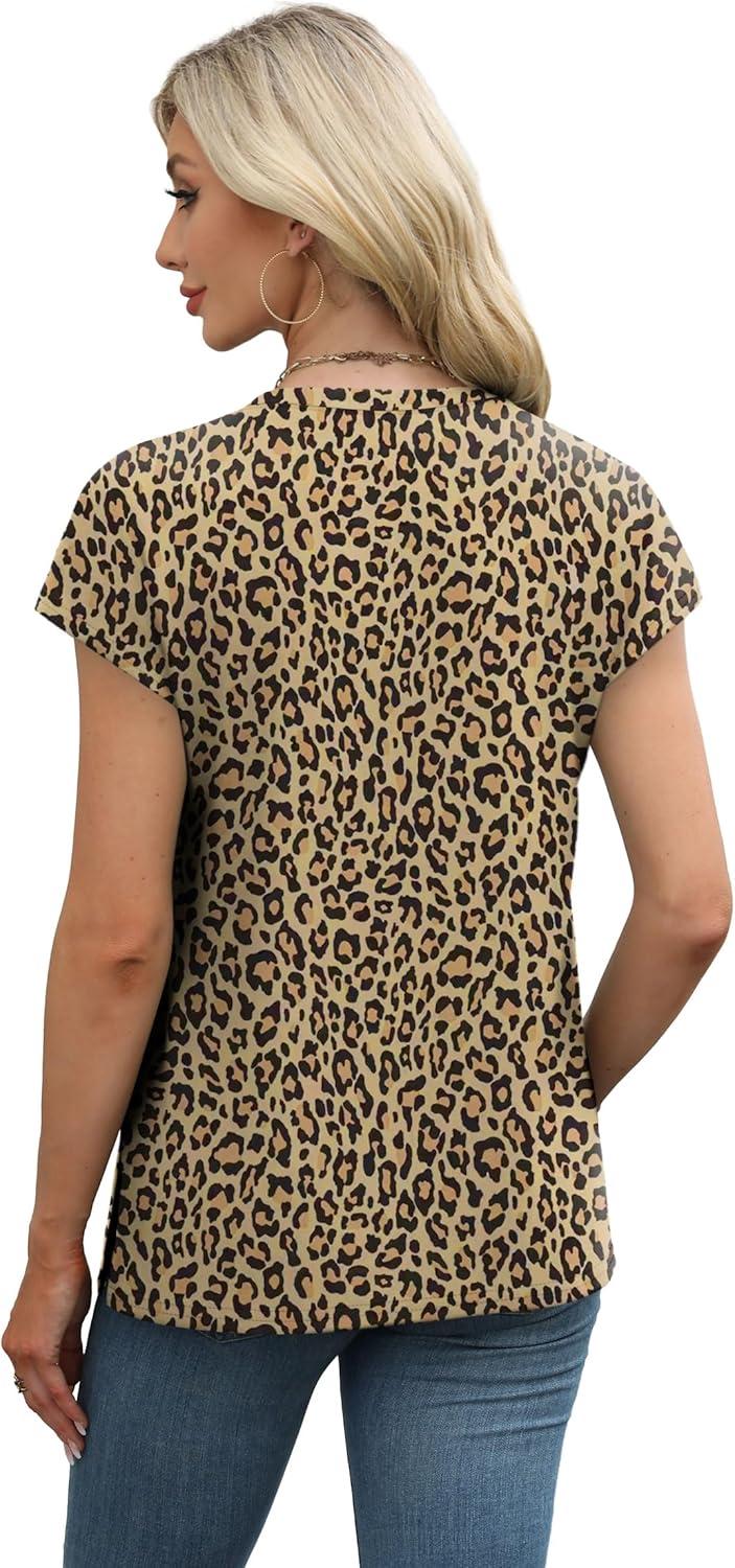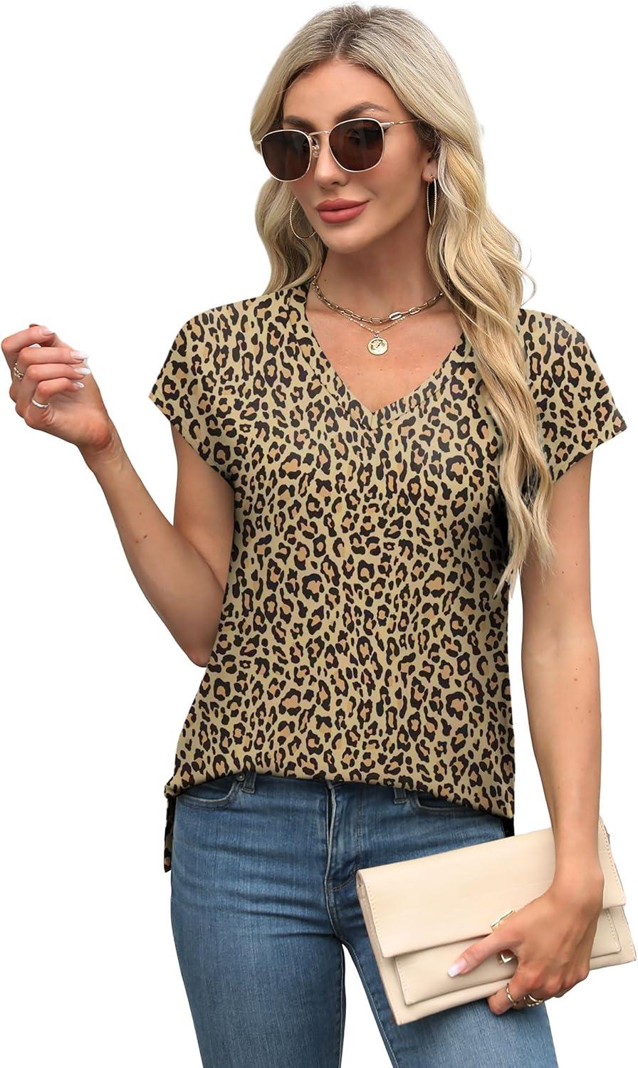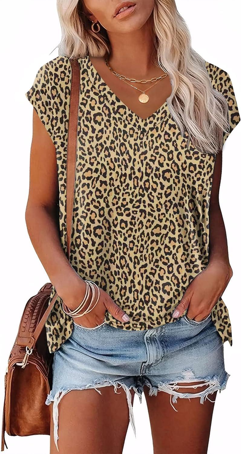 XIEERDUO Womens Tops V Neck Cap Sleeve Loose Fit Tee Shirts Summer Spring 2025 Eyelet/Printed(Printed H)