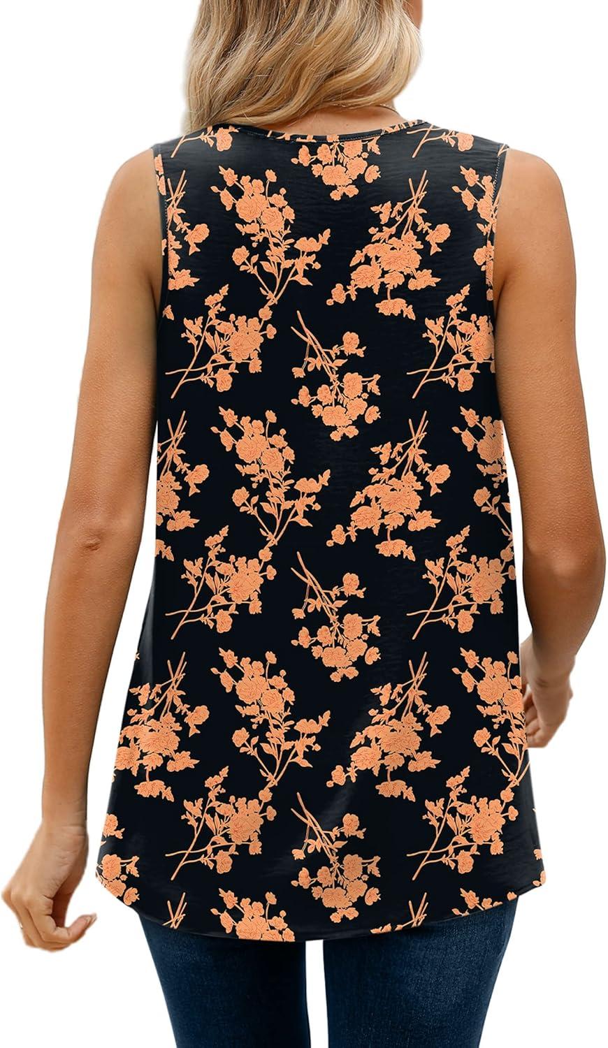 XIEERDUO Women’s V Neck Chiffon Tank Top Sleeveless Work Office Pleated Blouses Tops(03a-orange Flower)